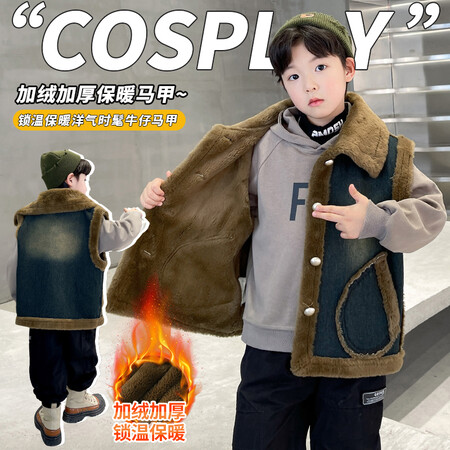 1*0下载“DX04681女童格子拼接牛仔羊羔毛马甲”图片包