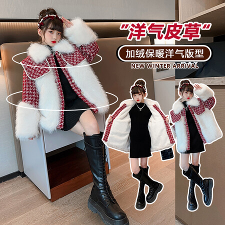 c*1下载“DX04681女童格子拼接牛仔羊羔毛马甲”图片包