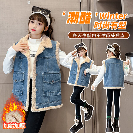 1*5收藏“DX03942整点蓝色纯色羊羔毛牛仔马甲”