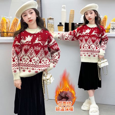 1*0下载“DX04733女童小熊毛衣加绒贴标格子裤”图片包