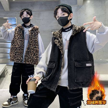 拾*絮下载“DX04545男童豹纹两面穿牛仔马甲”图片包