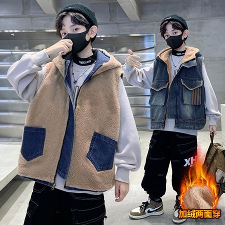 1*5收藏“DX04546男童奥粒绒两面穿牛仔马甲”