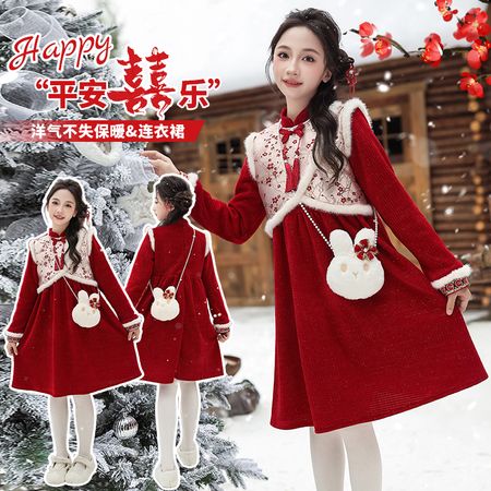 c*1下载视频“DX04539加绒红色木耳边连衣裙”